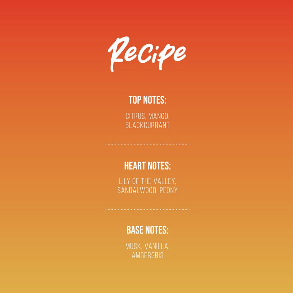 Mango med attitude. Frisk citrus, tropisk mango og saftig solbær ryster tingene op, inden det glider over i bløde blomster og vanilje. Giver vibes af poolside-playlist, gylden tan og is-kold selvsikkerhed.